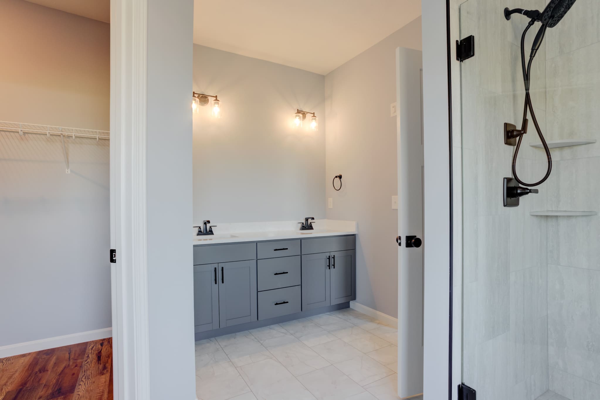 WOW! The first word that comes to mind when I look at this beautiful farmhouse version of our Rosewood floor plan. This 3084 square foot home with 4 bedrooms and 3 baths has everything a family could want. The covered front porch across the front of the home offers a great place to sit and relax and watch the world go by. If that wasn’t enough there is a large covered patio in the back, a good place for summer cookouts. Once you walk inside you are greeted by an open floor plan complete with a vaulted ceiling and lots of windows. The kitchen has a very unique look with rustic features and white appliances with bronze trimmings. The master suite on the mail level has a huge walk-in closet and bathroom with soaker tub and ceramic shower. Also on the main floor is a rec. room, full bath, large pantry and oversized laundry room. The awesome staircase takes you upstairs where you can look down on the family room below. Located upstairs are an additional 3 bedrooms, full bath and bonus room. See below for additional selection details!