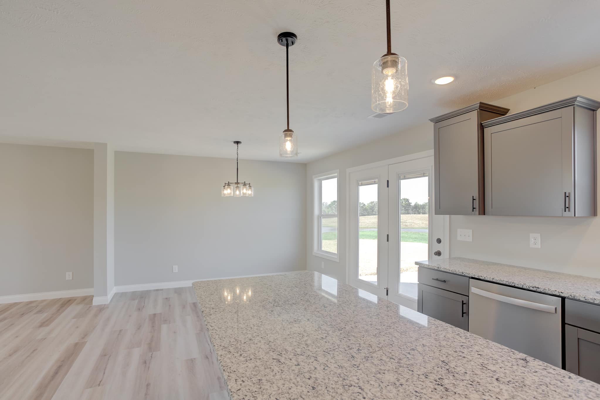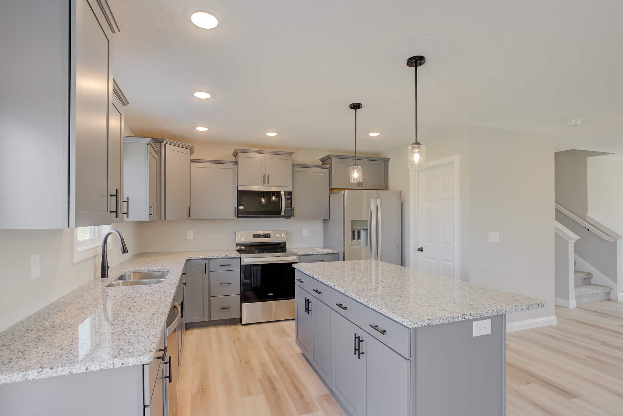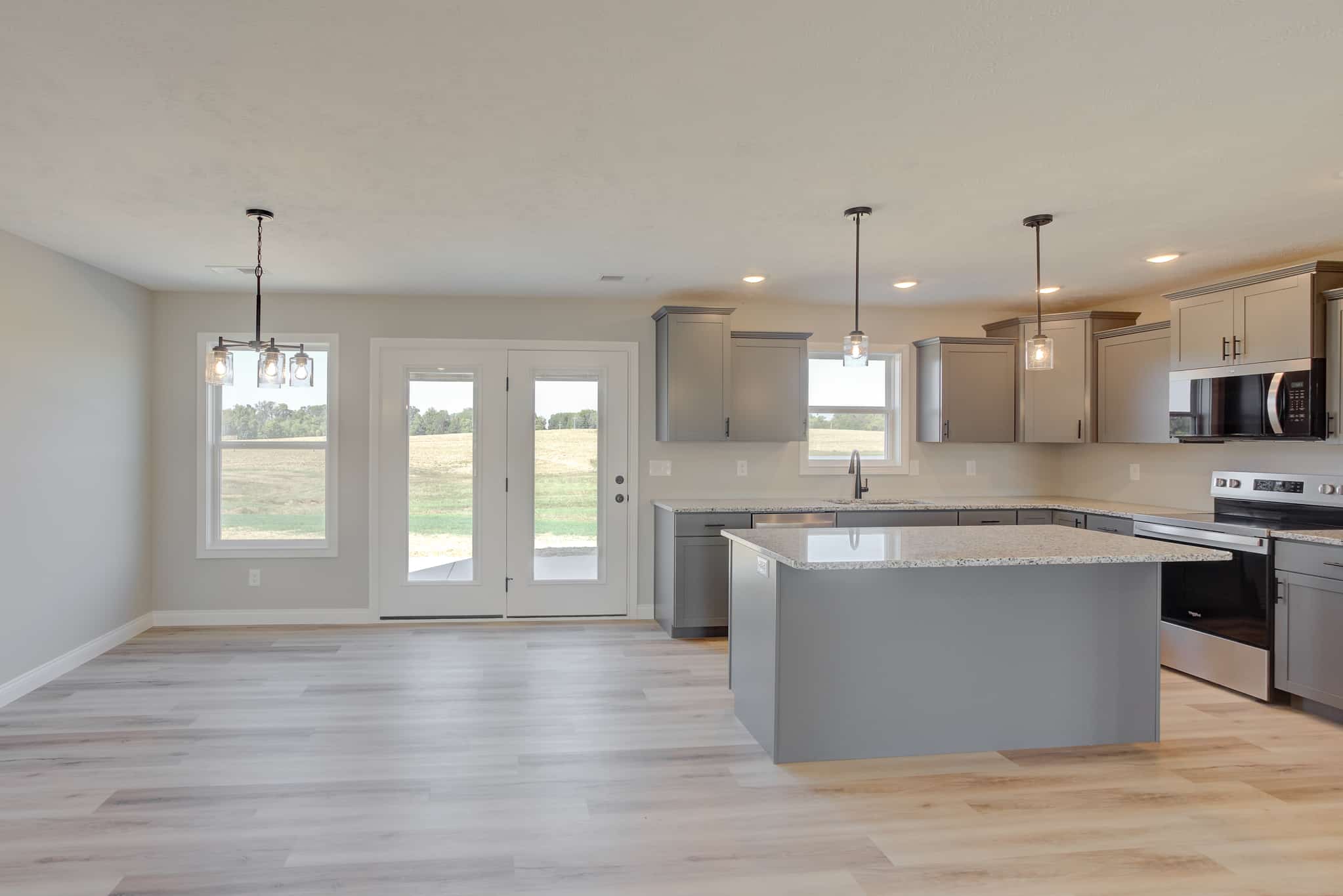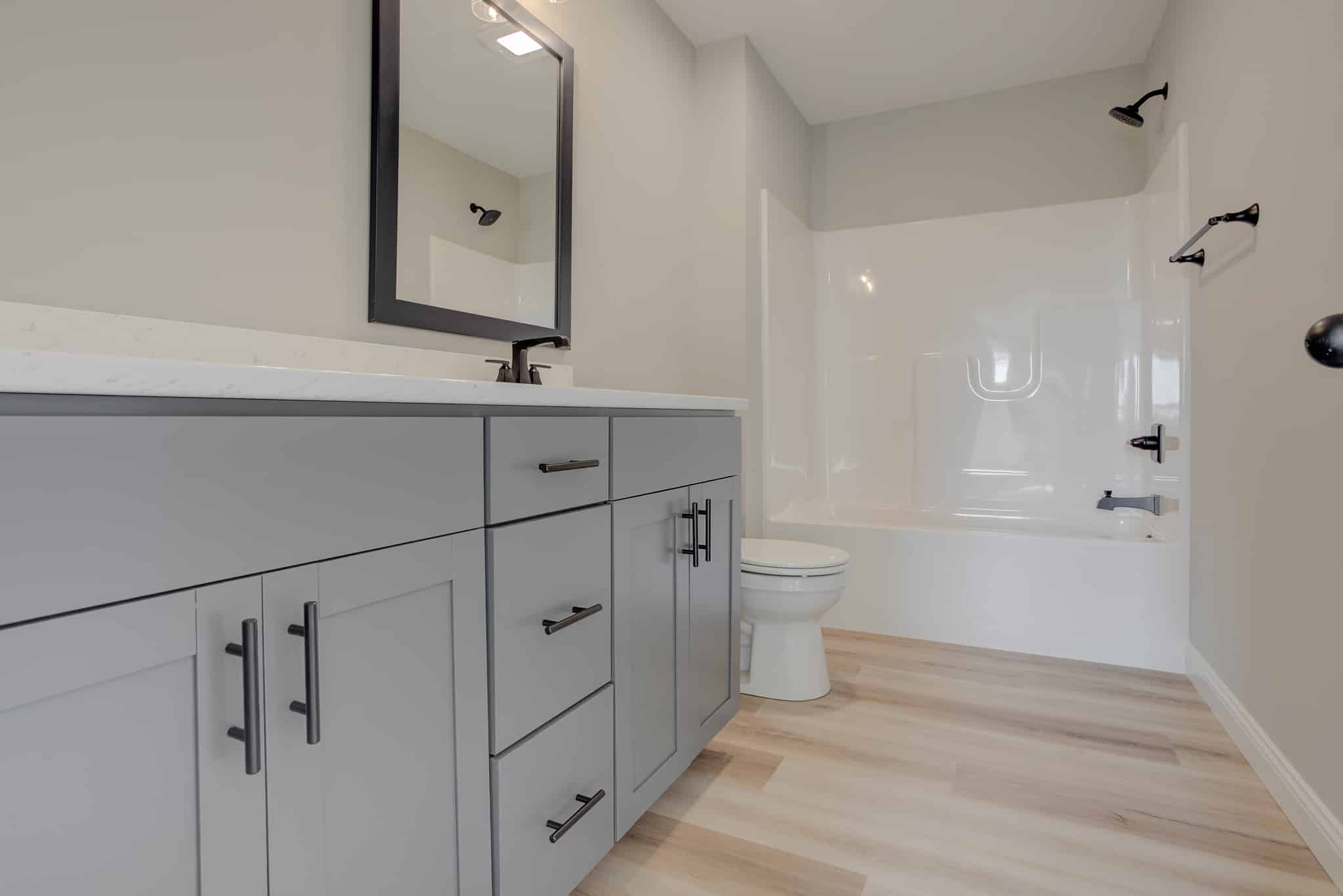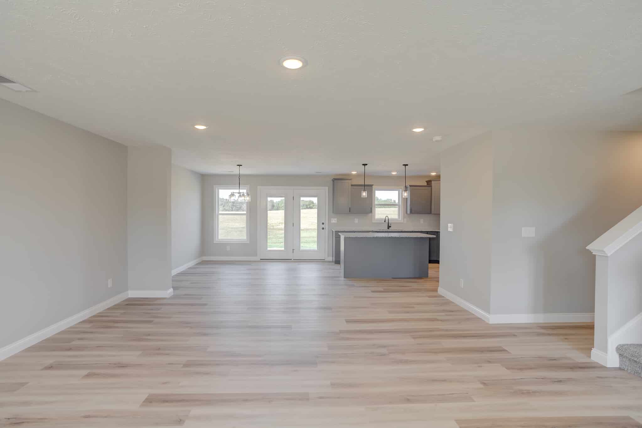 This Turquoise floor plan is our Farmhouse elevation and has been modified to have 3 bedrooms and an enlarged bonus room upstairs. The house consists of 2468 square feet and a spacious front porch perfect for relaxation and entertaining. The open floor plan on the first floor offers a family room, dining room and kitchen featuring cabinets with crown molding and a large pantry. The master is located on the main floor with a large walk-in closet and bathroom. Upstairs are two additional bedrooms, full bath, laundry room and very spacious bonus room great for family time. See below for additional selection details!