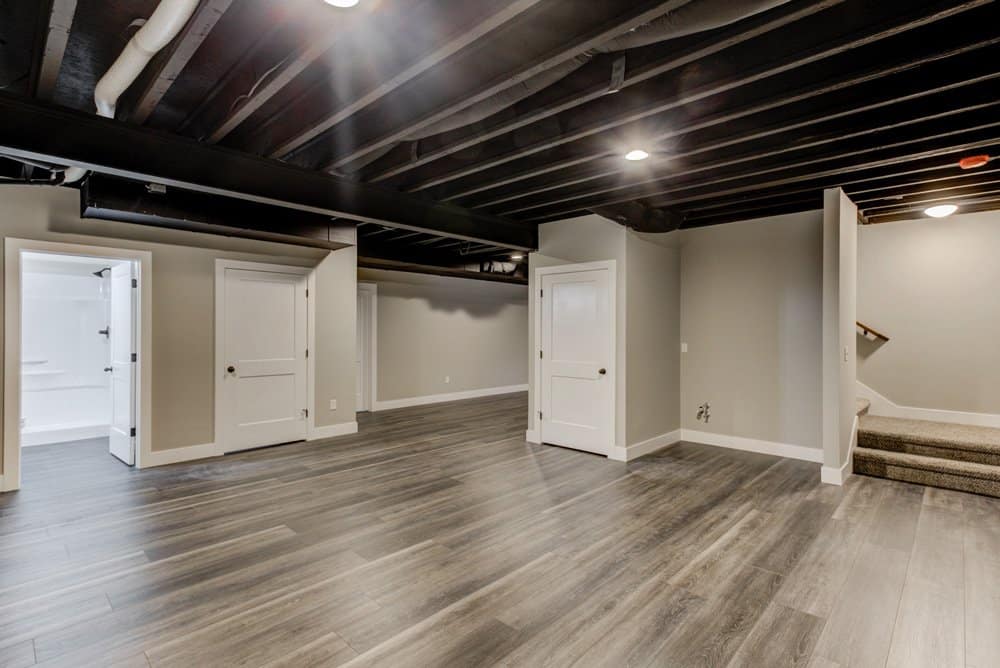 This home in Otwell, Indiana has 4 bedrooms, 2.5 bathrooms, a 2 car garage, and a finished basement! The exterior has a Cutface brick wainscot, carbon colored siding, Board & Batten shutters, a carriage garage door, and a 12×12 covered patio. The kitchen features Brelin white cabinets with tall castling, a Brelin stone gray island, granite countertops, a white subway tile backsplash, a black stainless range hood, and black stainless steel appliances. The bathroom vanities are Brelin white with white granite countertops.